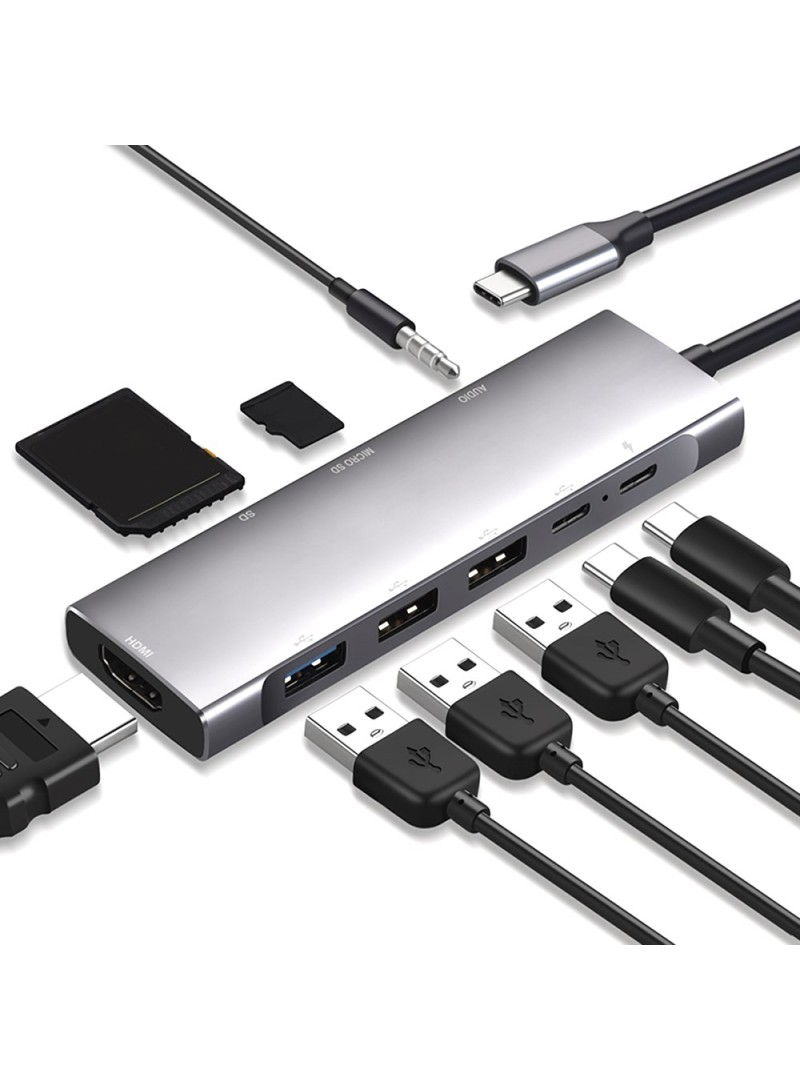 9 in 1 Docking Station 4K 30Hz USB C Hub HDMI Compatible 100W PD USB 3.0 + 2.0 Multiport Adapter For Laptop PC