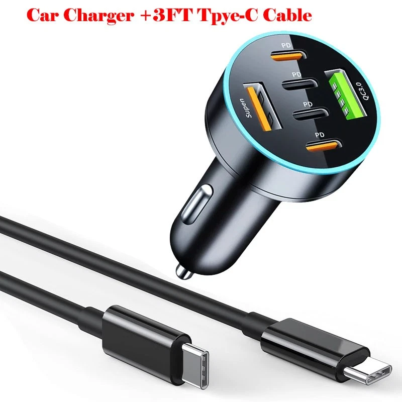6 Ports Car Charger (PD+QC3.0) With LED Digital